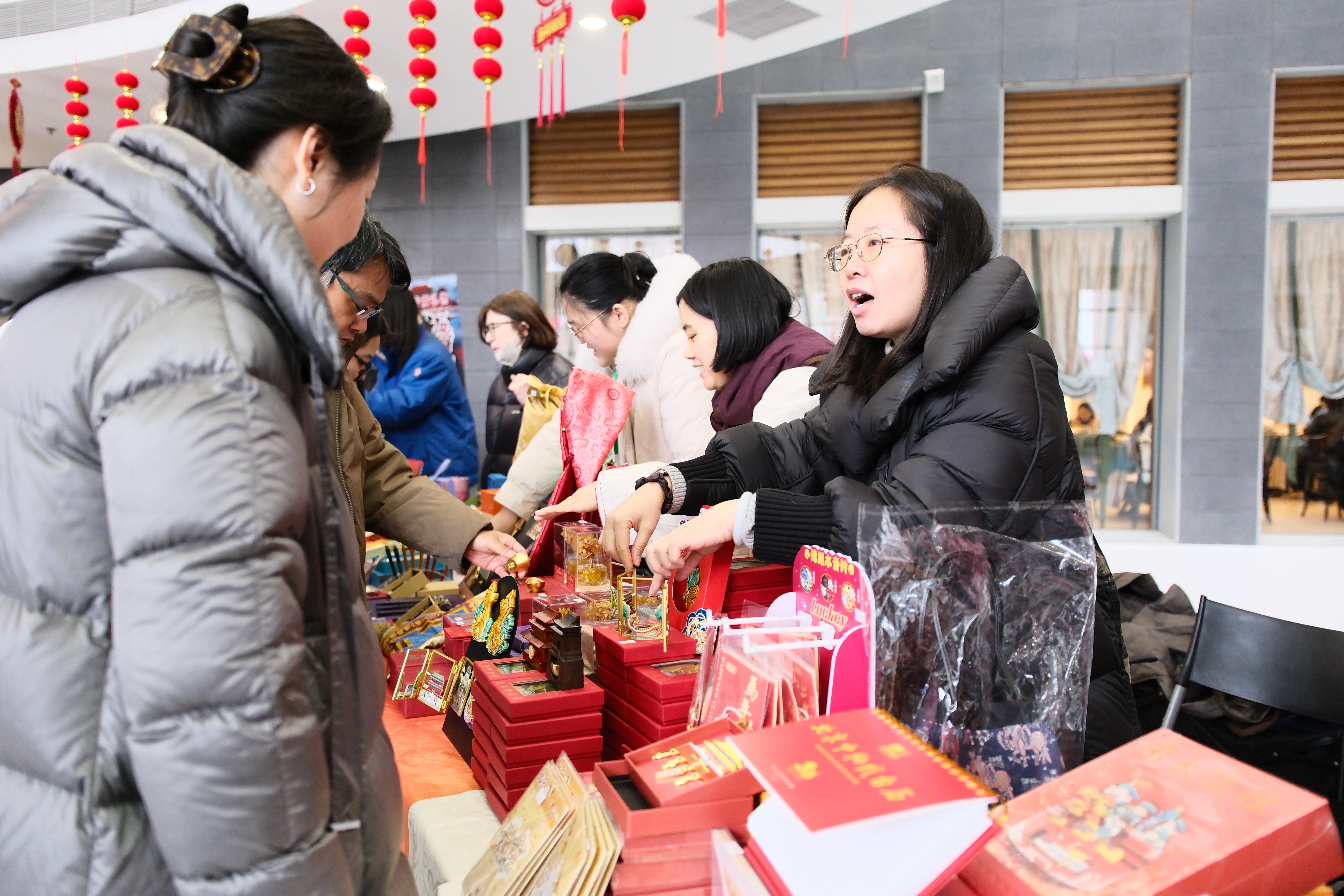职工在“惠民购”现场选购文创产品。
