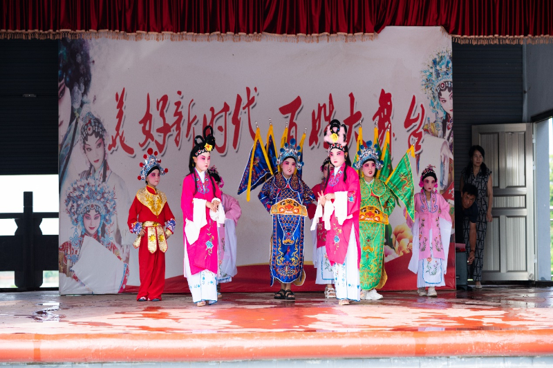 7月20号,孩子们在水口周村“百姓大舞台”上进行西河戏表演。新华网发 王一婷 摄