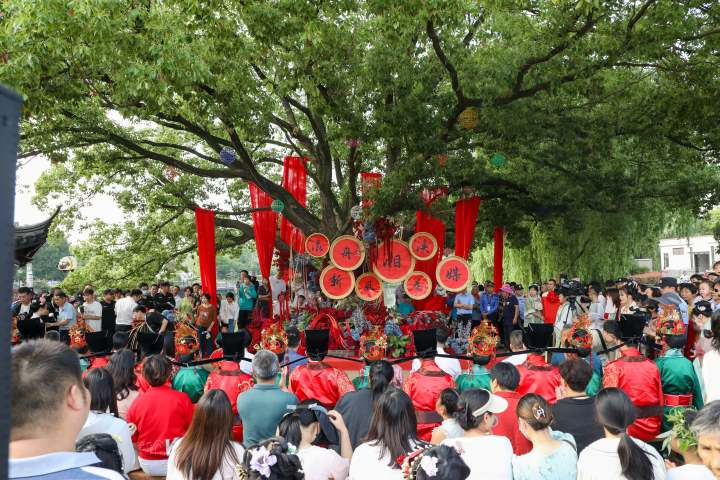 “头一次看到这么特别的活动,新人们不光体验了一回宋制婚礼,还节省了结婚成本。”在“漾舟湘溪 新风为媒”首届移风易俗水乡婚礼的现场,观礼的村民从四面八方涌来,见证了这浪漫而特殊的时刻。