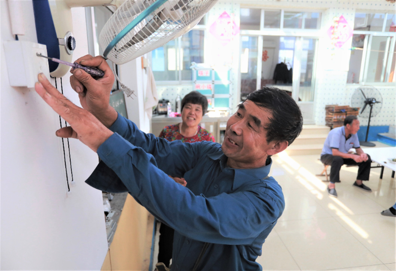 孙涛为村民检修电器设备。山东省文明办供图