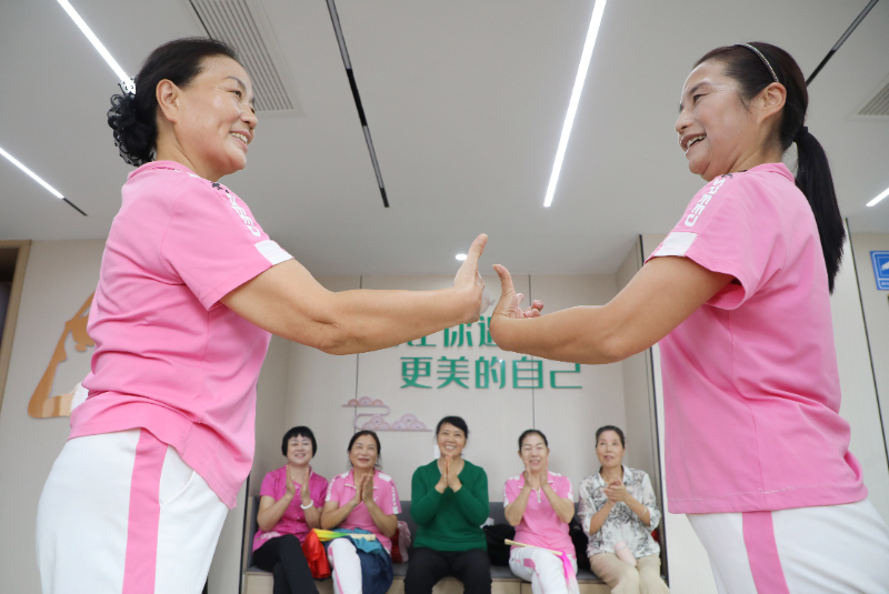 2024年9月28日,安徽省六安市叶集区史河街道柳林社区新时代文明实践站公益培训班上,爱好舞蹈的居民在自编自演文艺节目。新华网发 (田凯平 摄)