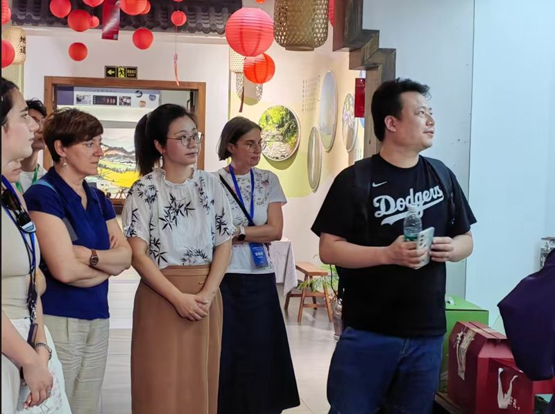 8月21日,浙江省级文化特派员邵慧带领意大利维罗纳大学12名师生团队夏令营走进浙江省宁波市梁弄镇研学。新华网发(余姚市融媒体中心干雨微 摄)