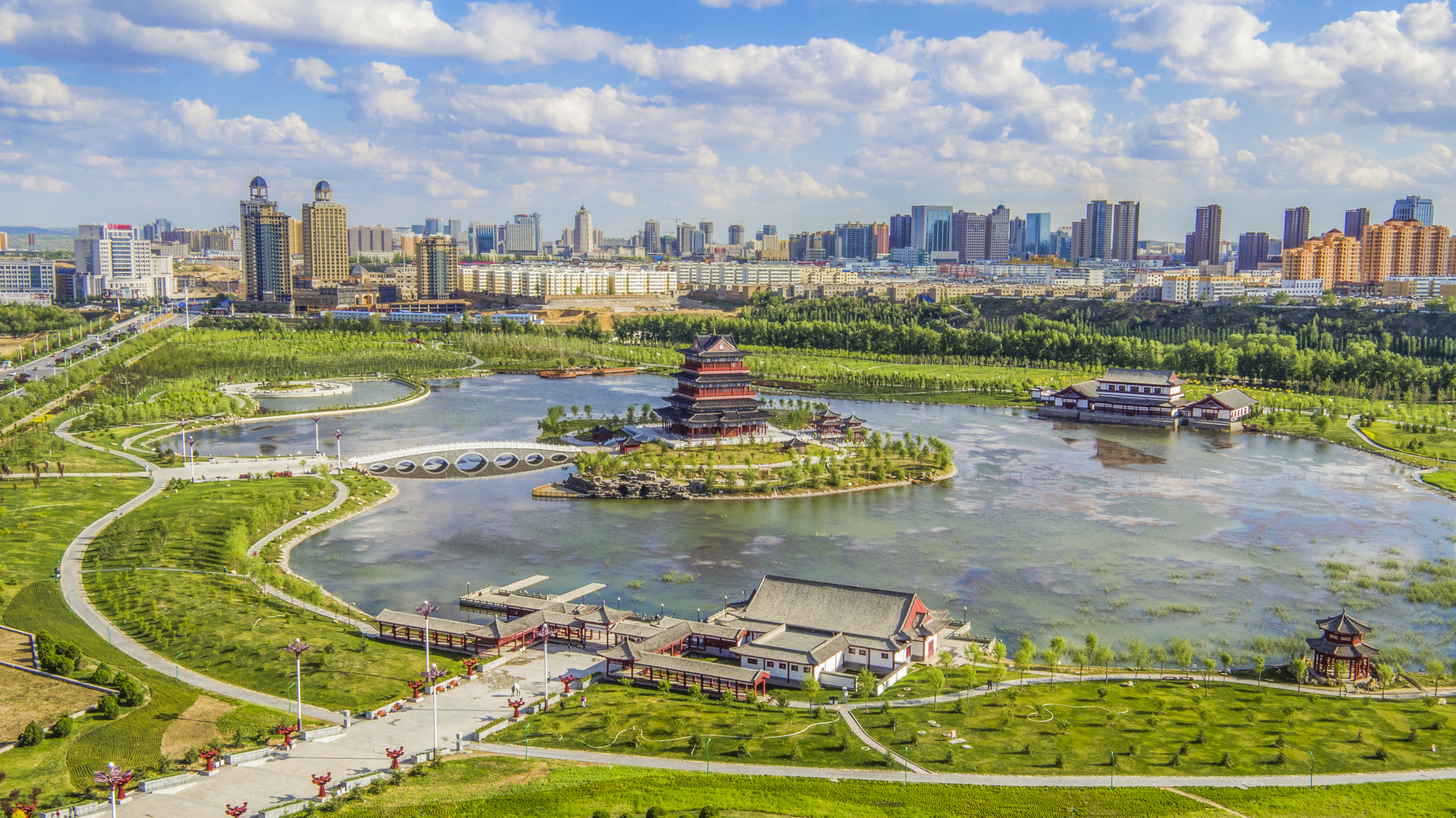 榆林市,位于中国陕西省的最北部,黄土高原和毛乌素沙地交界处,自古以来就有“九边重镇”之称。其地理位置独特,自然环境在历史上经历了显著的变化,尤其是从荒漠到绿洲的转变,被誉为“塞上小江南”,这一变化不仅是对当地人民不懈努力的肯定,也是生态文明建设的典范。榆林市委宣传部供图