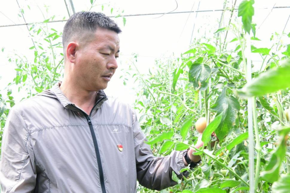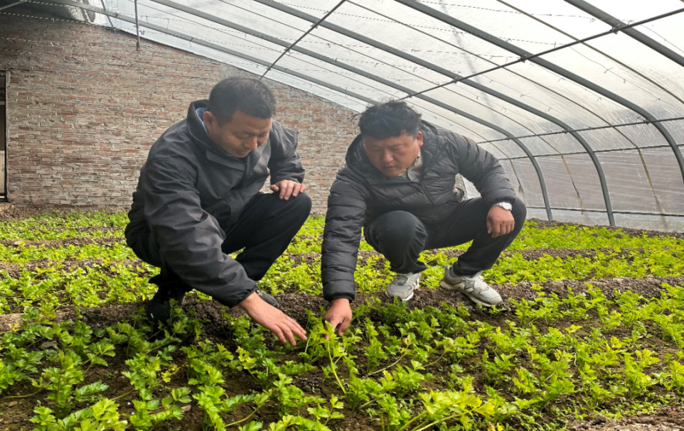 郝庆水查看蔬菜生长情况。西青区文明办供图