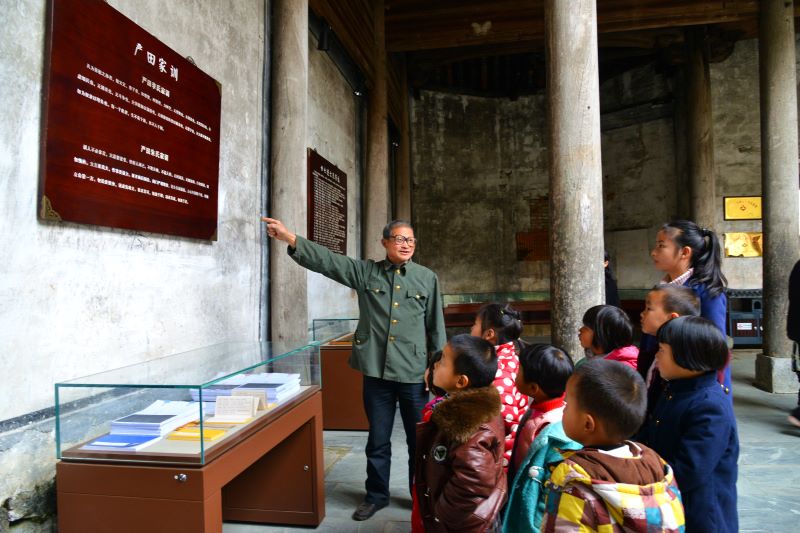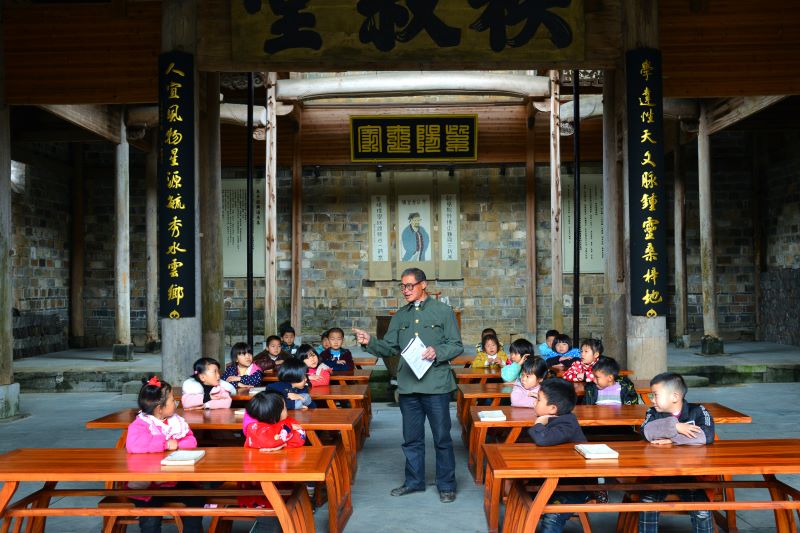 婺源县赋春镇严田村老党员王五盛为孩子们上道德讲堂课。新华网发(程新德 摄)