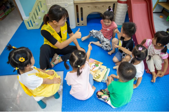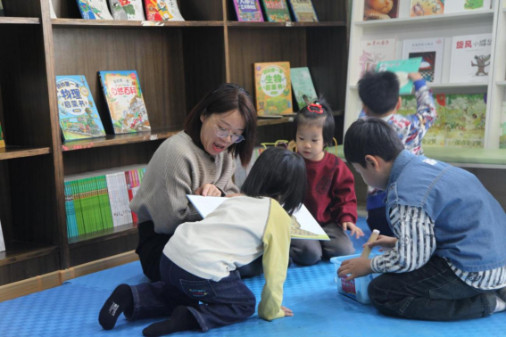 潍坊奎文区健康街社区成长中心的老师给孩子讲故事。周胜武 摄