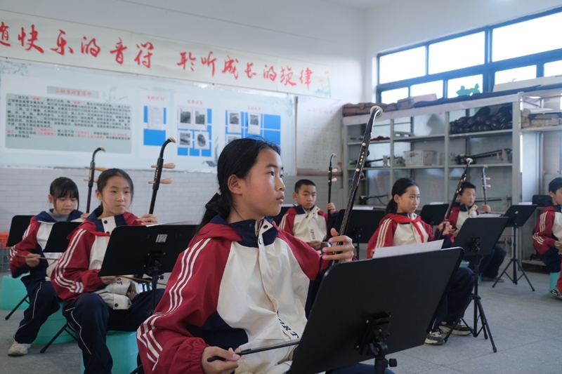11月5日,和平小学的学生们在乡村学校少年宫上二胡课。新华网发(精神文明报 漆世平 摄)