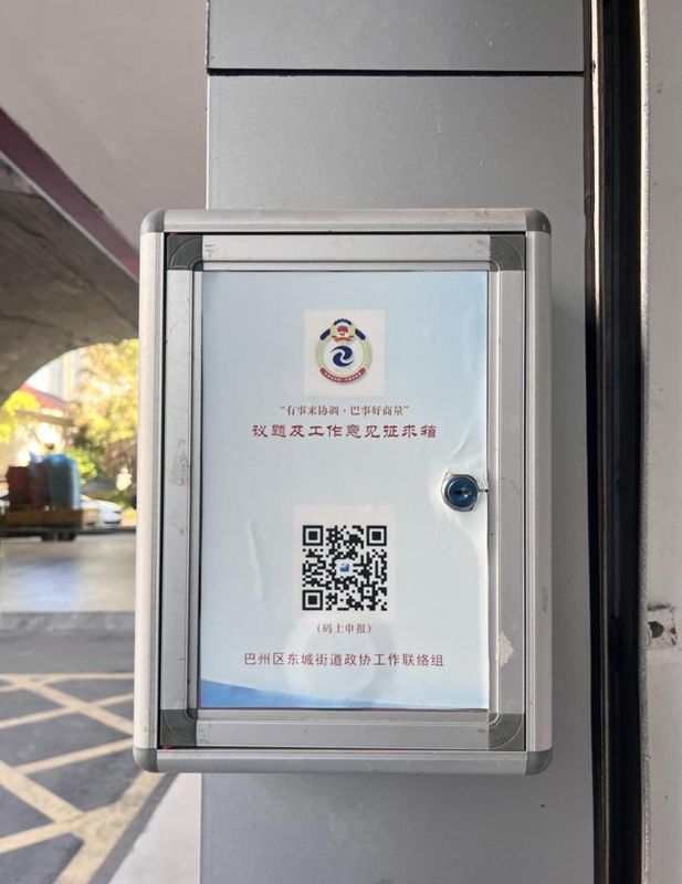 群众意见征求箱。新华网发(巴中日报 牟柯 摄)